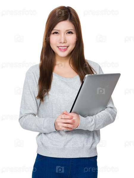 Азиатская женщина с портативным компьютером