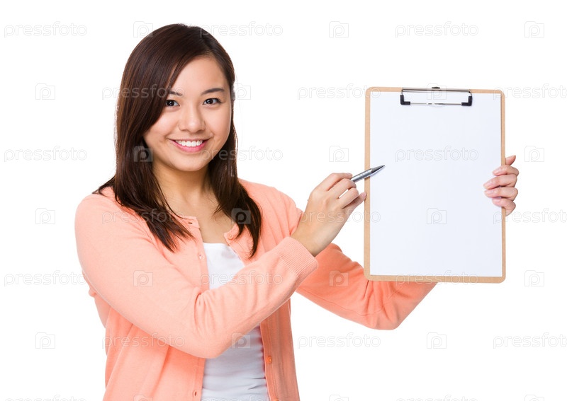Молодая женщина с планшеткой