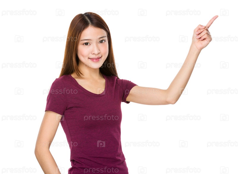 Азиатская женщина указывает пальцем вверх