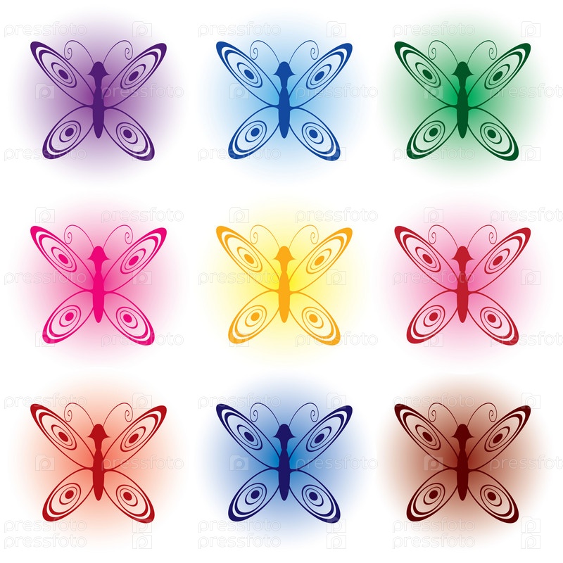 Цветные бабочки на белом фоне