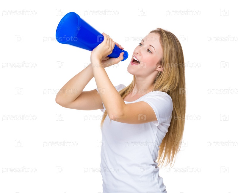 Женщина кричит с мегафоном