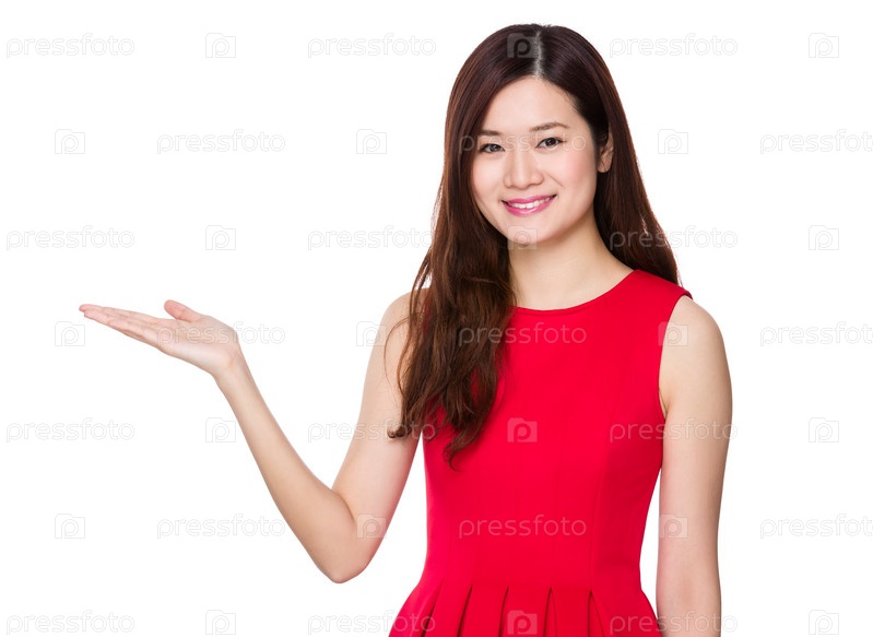Азиатская женщина с открытой ладонью руки