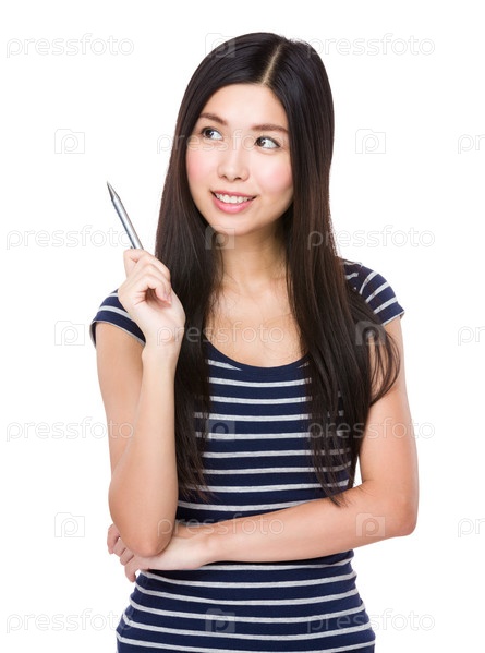Азиатская женщина думает об идее