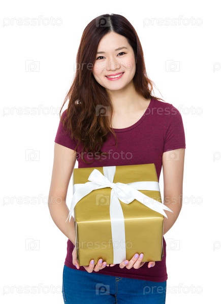 Азиатская женщина с подарком