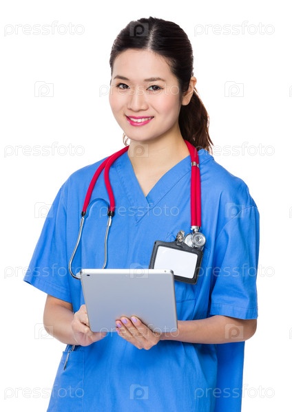Женщина-врач использует планшет
