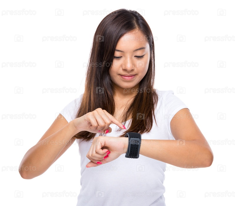 Молодая женщина со смартчасами