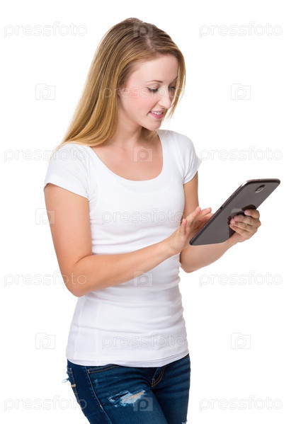 Женщина использует планшет