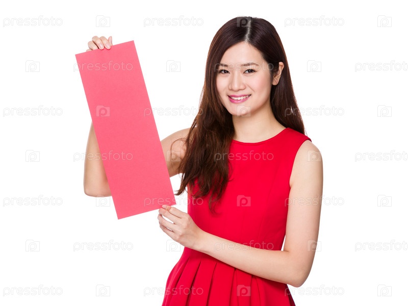 Азиатская девушка с баннером