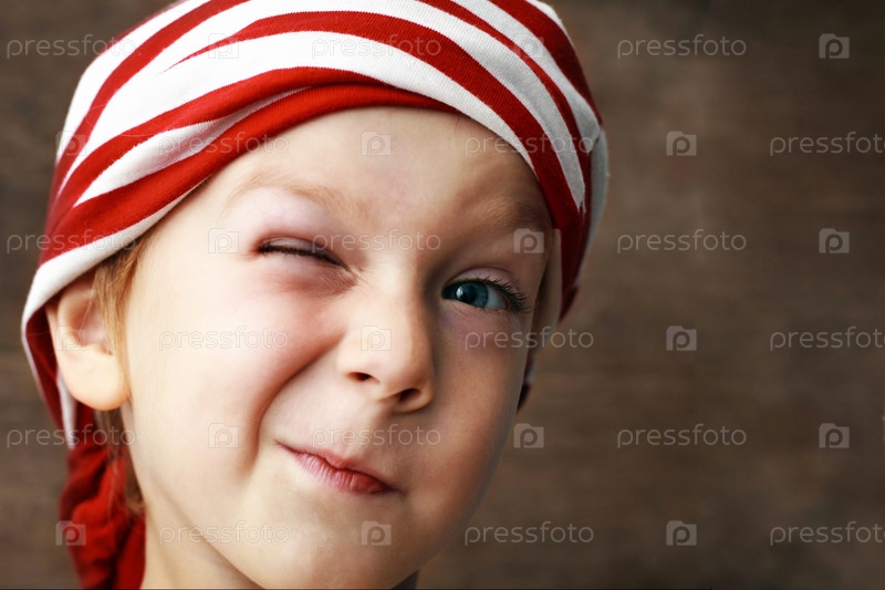 Портрет мальчика с забавной гримасой на лице на коричневом фоне