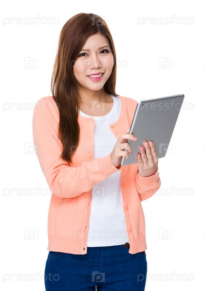 Женщина использует планшетный ПК