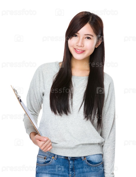 Молодая женщина с планшеткой