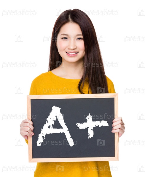 Женщина держит доску, показывая А+