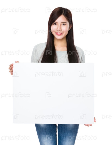 Молодая женщина с белым баннером