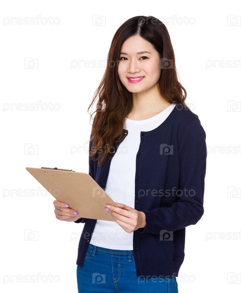 Молодая женщина с планшеткой