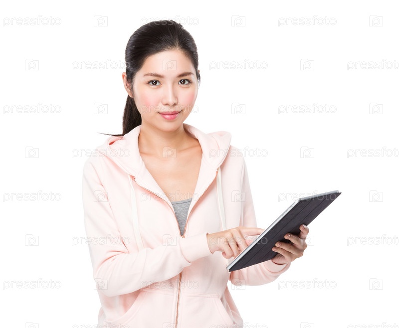 Азиатская женщина использует планшет