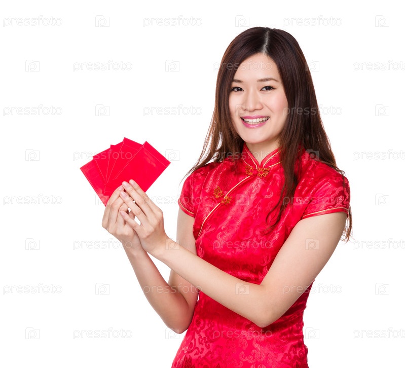 Китайская женщина держит карточки