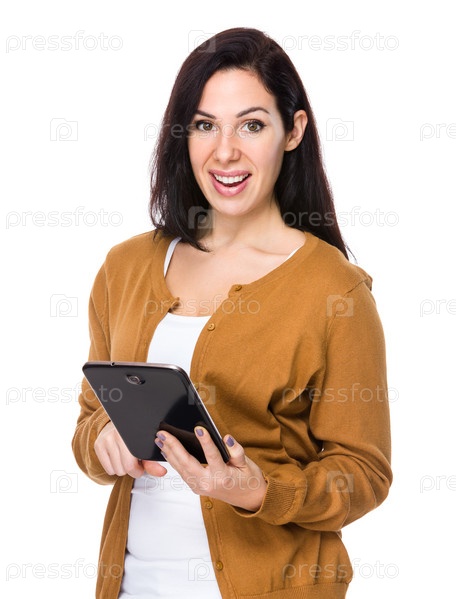 Женщина-брюнетка с планшетом