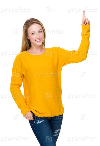 Женщина указывает пальцем вверх