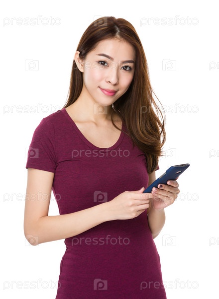 Азиатская девушка использует мобильный телефон