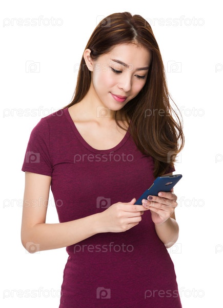 Молодая женщина использует сотовый телефон
