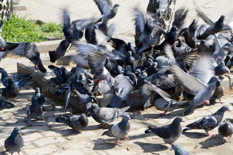 Стаи голубей на земле