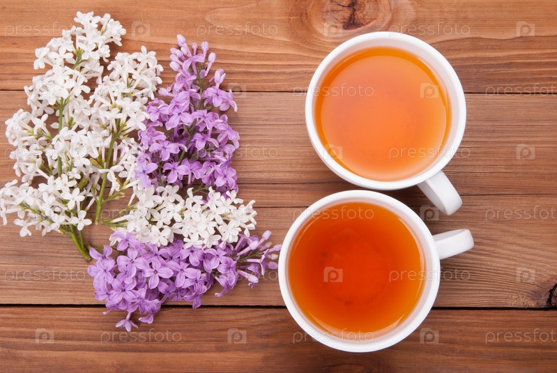 Две чашки чая и сирень