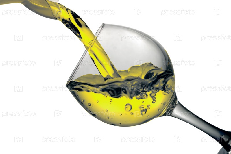 Сухое белое вино наливают в стакан
