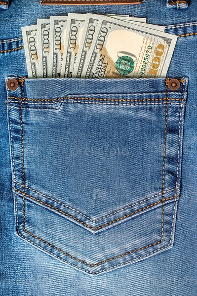 Долларовые банкноты в джинсовом кармане