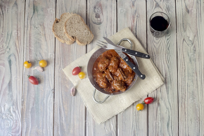 Фрикадельки в томатном соусе на деревянном столе