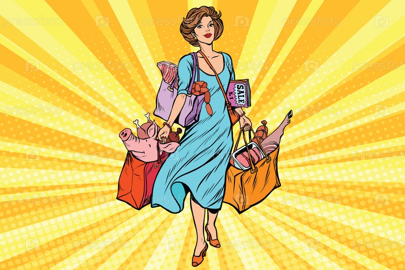 Женщина с купленным мясом