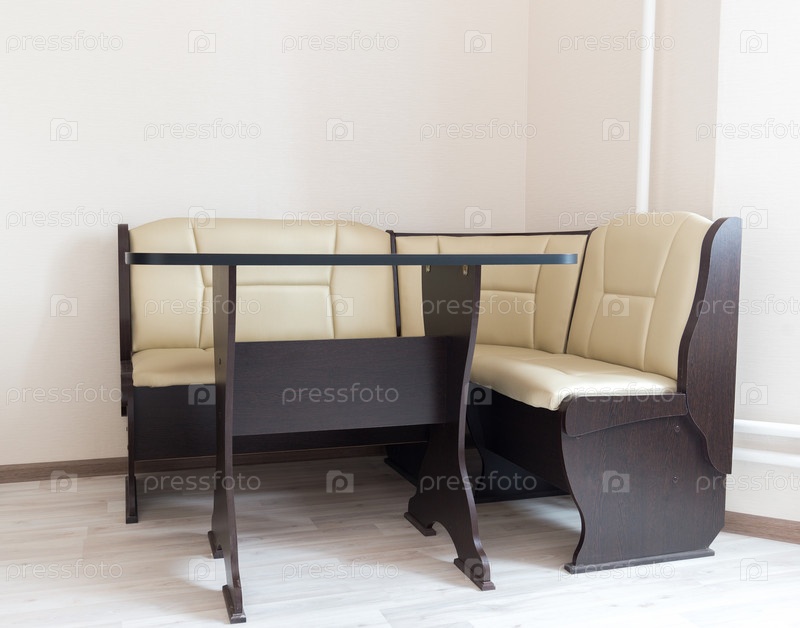 Кухонный угловой диван и стол в интерьере