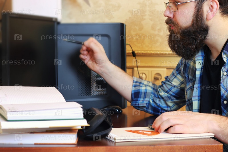 Мужчина пишет за столом