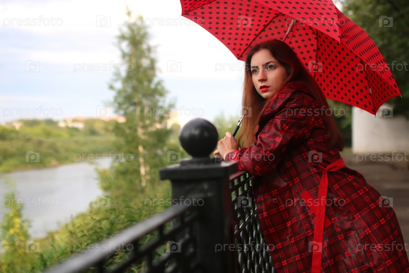 Женщина в плаще с зонтиком