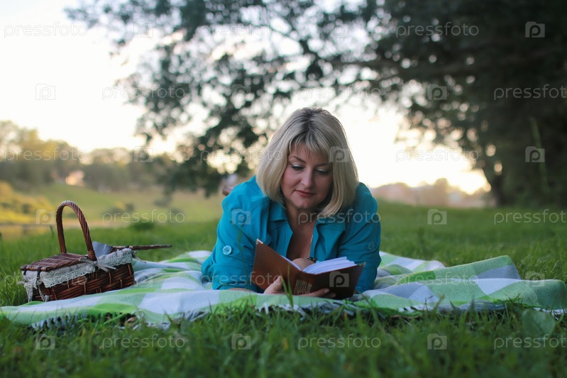 Женщина в парке с книгой на траве