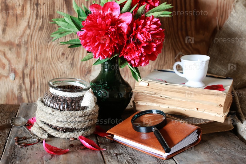 Старинная книга, цветы и кофе