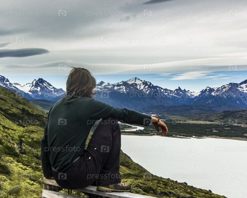 Человек над озером в Патагонии