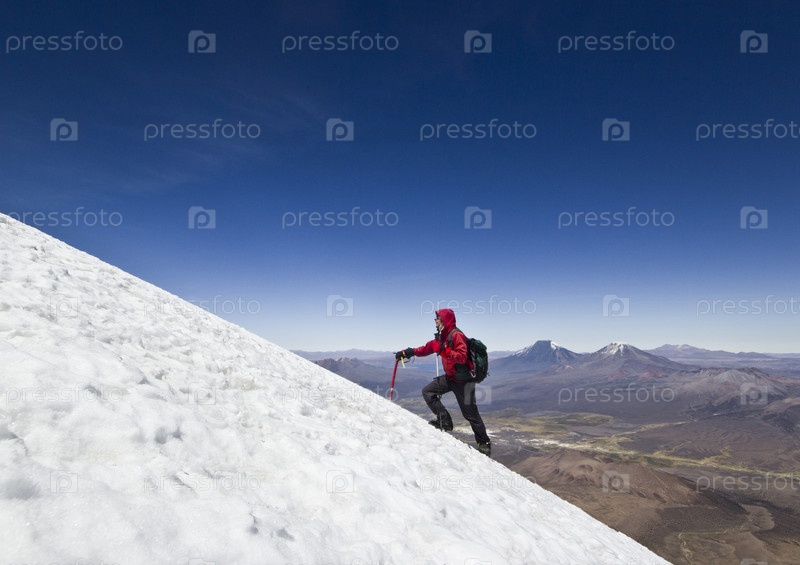 Человек поднимается на ледник вулкана Саяма в Боливии