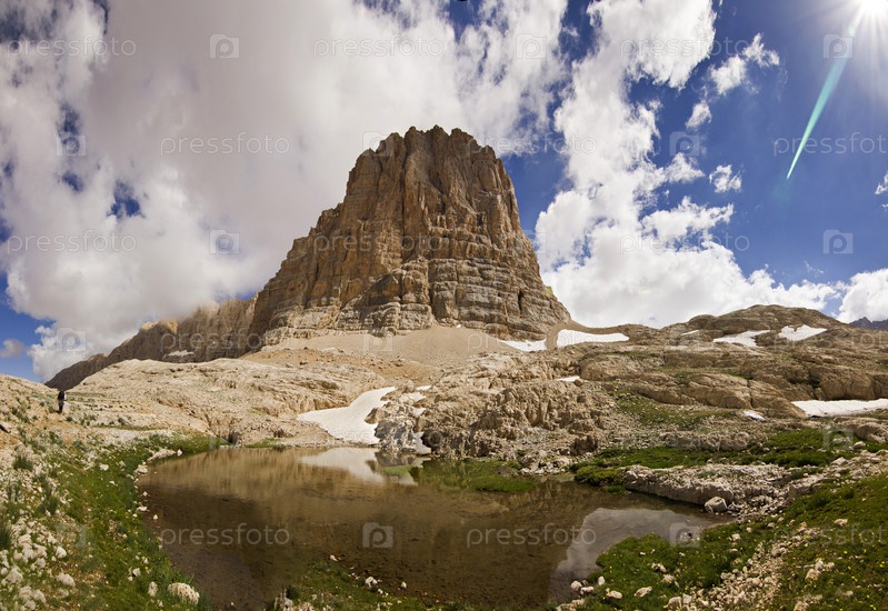 Озеро в горах с большой скалой в Турции, Аладаглар