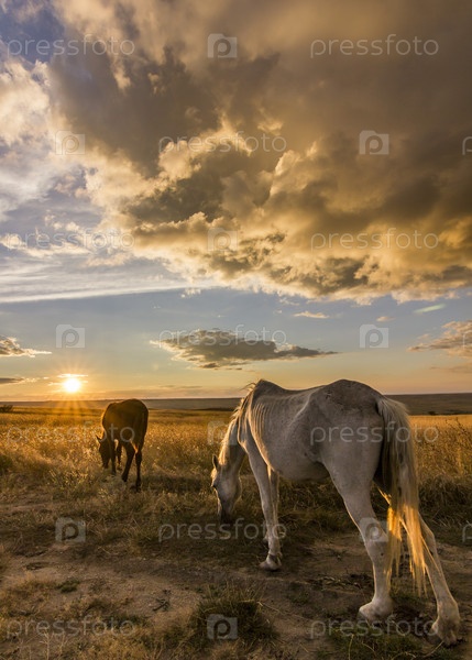 Две лошади на лугу