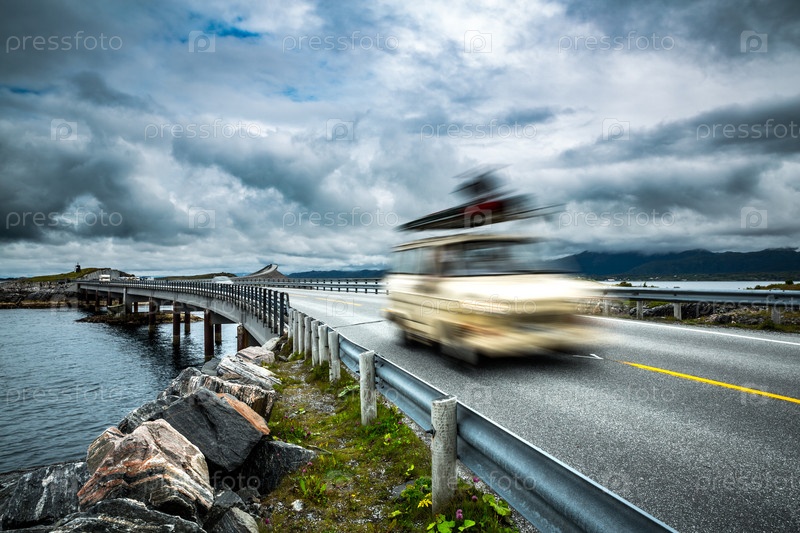 Норвегия. Автомобиль едет по шоссе