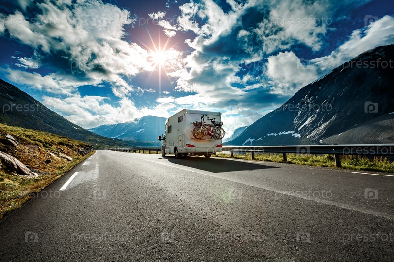 Автомобиль-дом едет по шоссе