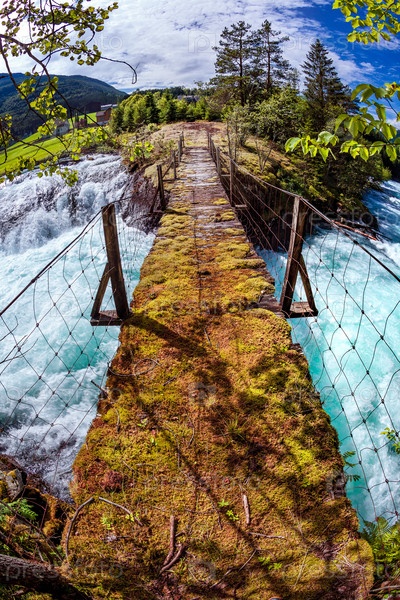 Подвесной мост через горную реку, Норвегия