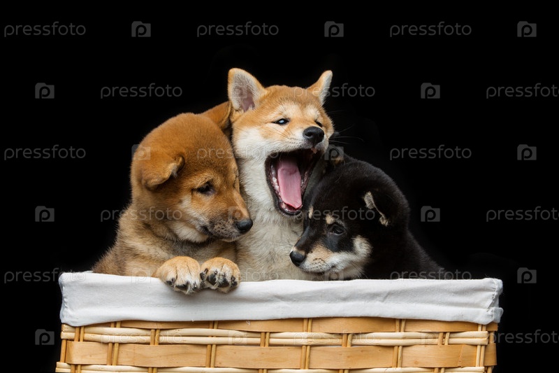 Красивые щенки шиба ину в корзине