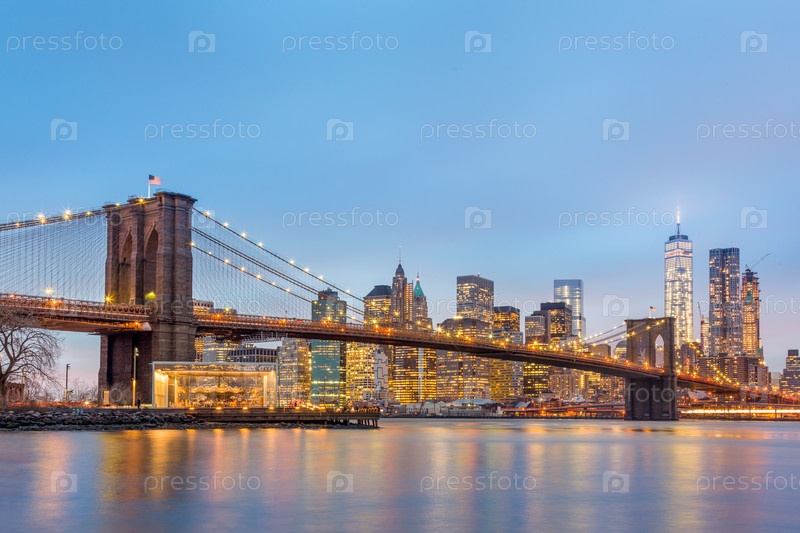 Бруклинский мост в сумерках, Нью-Йорк