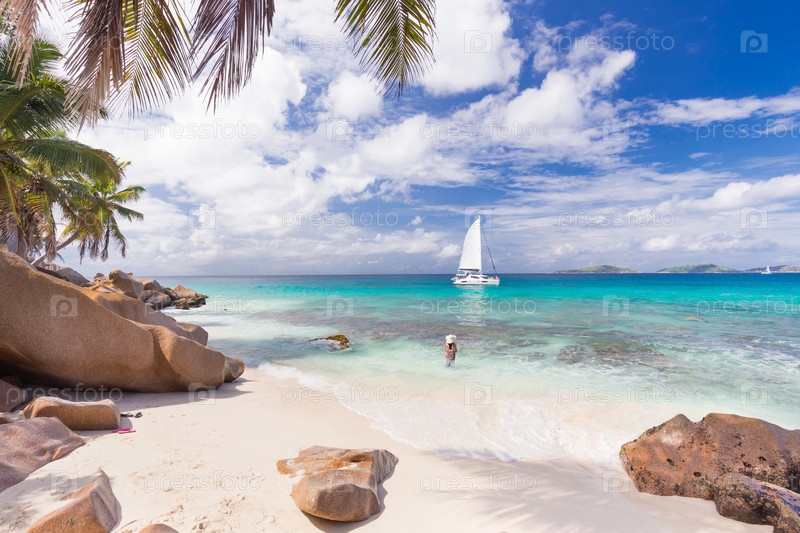 Наслаждаясь прекрасным пляжем Анса Пататса на острове Ла Диг, Сейшельские острова