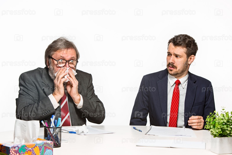 Здоровый и больной коллеги в офисе
