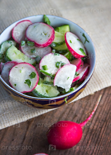 Весенний салат с редисом и огурцом
