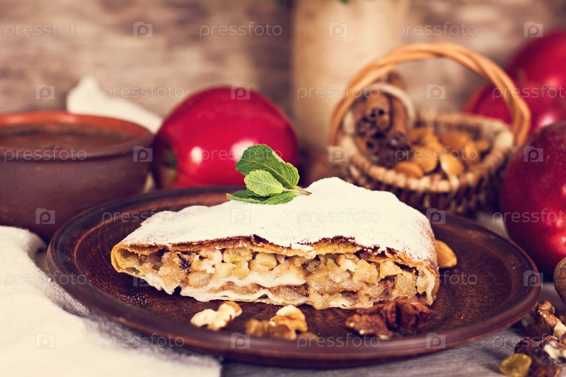 Самодельный яблочный штрудель со свежими яблоками