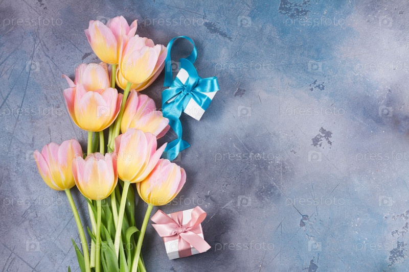Розовые и желтые тюльпаны