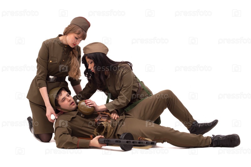 Женщины-солдаты оказывает первую помощь